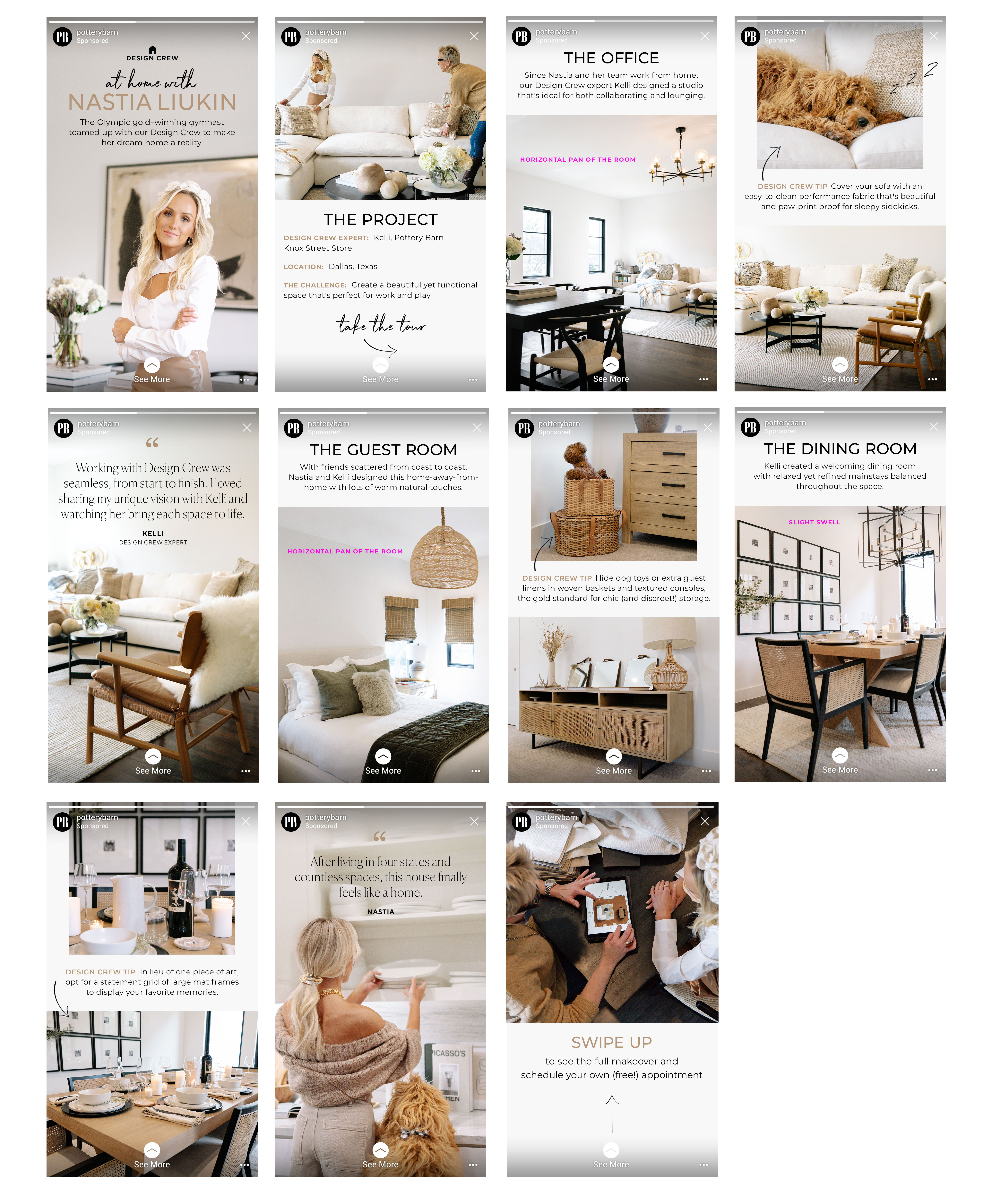 Highlight this high-profile home makeover with a digital campaign that gives credibility to Pottery Barn’s Design Crew services and illustrates the fun and approachable way our interior designers can transform any home. Inspire customers to shop directly from the makeover and drive more Design Crew appointment sign-ups.